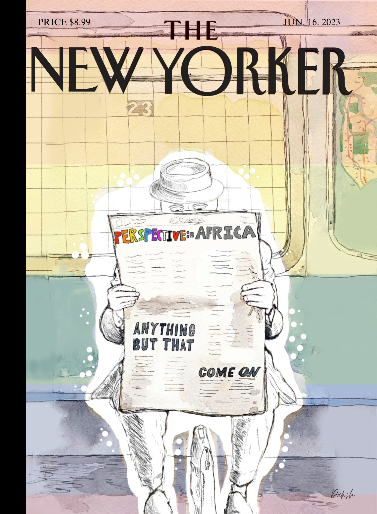 Along with that, another ELL task that we had to create was a THE NEW YORKER style article. We had to create it based on some issue, in my case, I chose the Pride Perspectives in Africa, and fit it into the theme of a real article. By analyzing how regular articles I made I took their archetypes and created this project. As an addition I created the drew the front cover as seen on the side. For this, I received a 7,7,6 (B,C,D).
